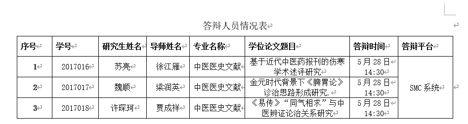 基础医学院硕士研究生第二组(中医医史文献专业)于2020年5月28日14:30进行学位论文答辩,欢迎参加,特此公告!