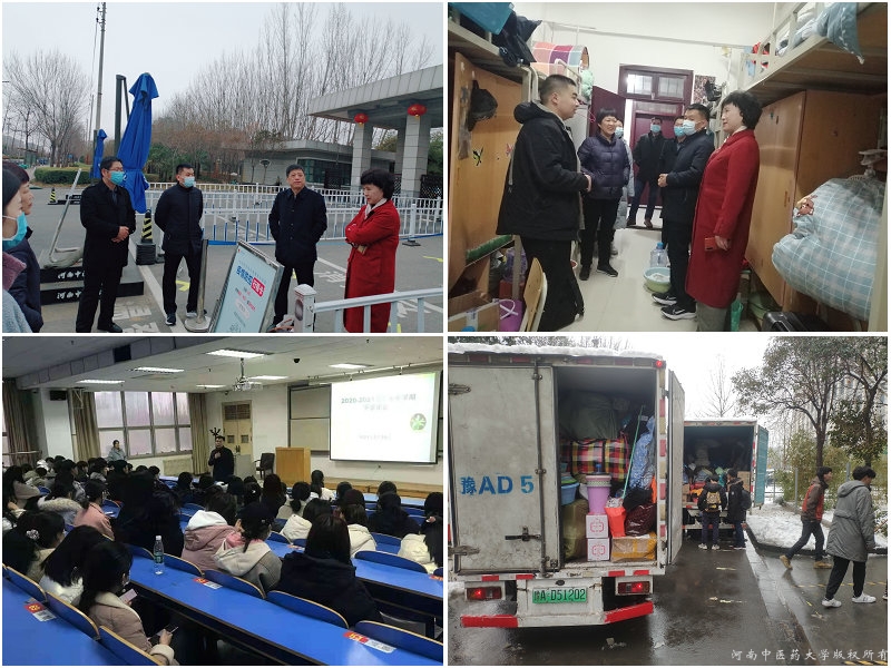 在返学报到过程中,校长许二平、副校长田力、学工部以及基础医学院领导均到场指导工作,并深入学生宿舍了解学生情况。学生返校后,基础医学院积极组织召开最后一次主题班会,安排搬迁事宜,介绍后期人才培养主要内容并鼓励大家在新的环境中勤学慎思、立志成才。由于报到当晚突降暴雪,在第二天的搬迁过程中,基础医学院领导亲临新校区及我校第五临床医学院文化路校区现场,检查指导搬迁工作,看望同学们,了解大家需求;辅导员们既当指挥员又当战斗员,及时协调并解决临时出现的各种问题;学生干部、学生党员发挥模范带头作用,他们和领导、老师们一起冒着风雪严寒,团结协作,密切配合,顺利完成搬运工作。