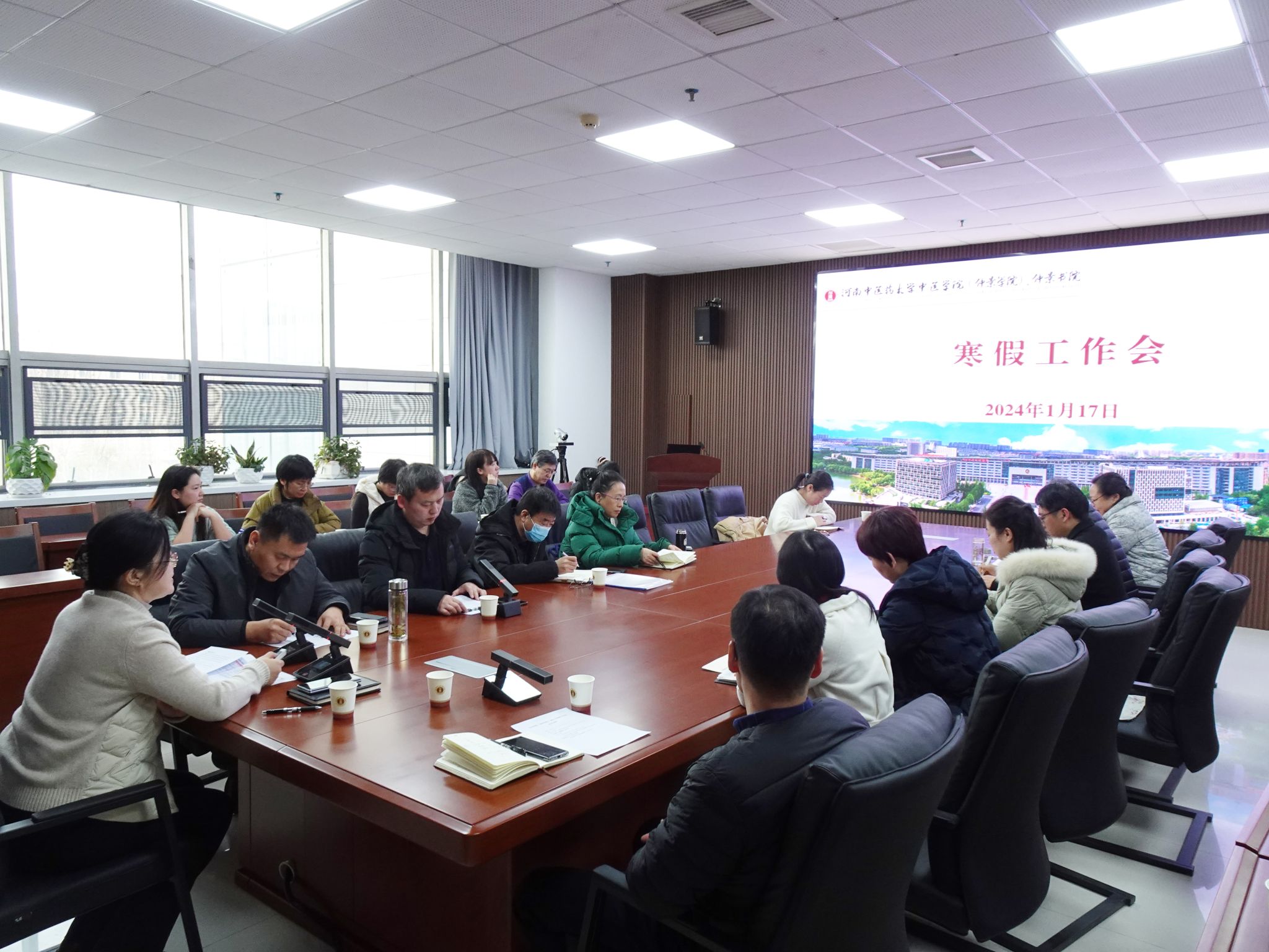 本网讯(文/张培旭 图/史占江)为切实做好寒假期间相关工作,确保各项工作平稳有序推进,2024年1月17日下午,中医学院(仲景学院)、仲景书院于A332会议室召开寒假工作会,学院全体班子成员、党支部书记和科室主任参加会议。会议由学院副院长刘文礼主持。