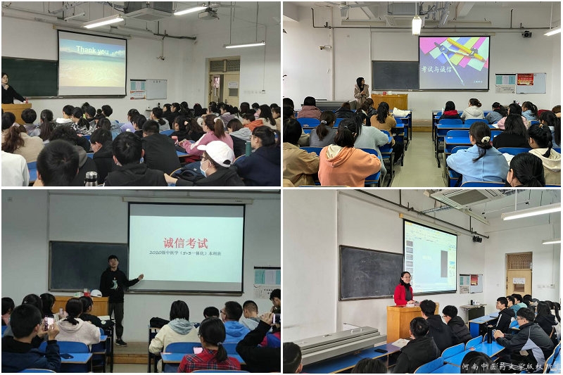 诚信乃立人之本,诚实守信是做人的基本要求。班会上,各班辅导员及班主任带领学生进一步解读《河南中医药大学学生手册》中相关考风考纪的内容,认真讲述诚信的重要性及诚信考试的必要性,对考试要求和考场纪律作了详细的传达,要求同学们认真学习相关的考试管理、考试纪律及违纪处分等方面的规章制度。老师们一方面重点强调同学们要严于律己,深刻认识考试违纪的严重性,严守各项考试纪律,杜绝考试违纪行为的发生;另一方面,教导同学们要在最后冲刺复习中注重正确的考试策略,提高复习效率,以“摒弃前嫌,把握当下,轻松应考”的考试心态,克服考试前的紧张心理,合理安排复习时间,注意劳逸结合。最后,老师们鼓励大家以饱满的热情和积极的态度投入到备考中去,争取取得好成绩。