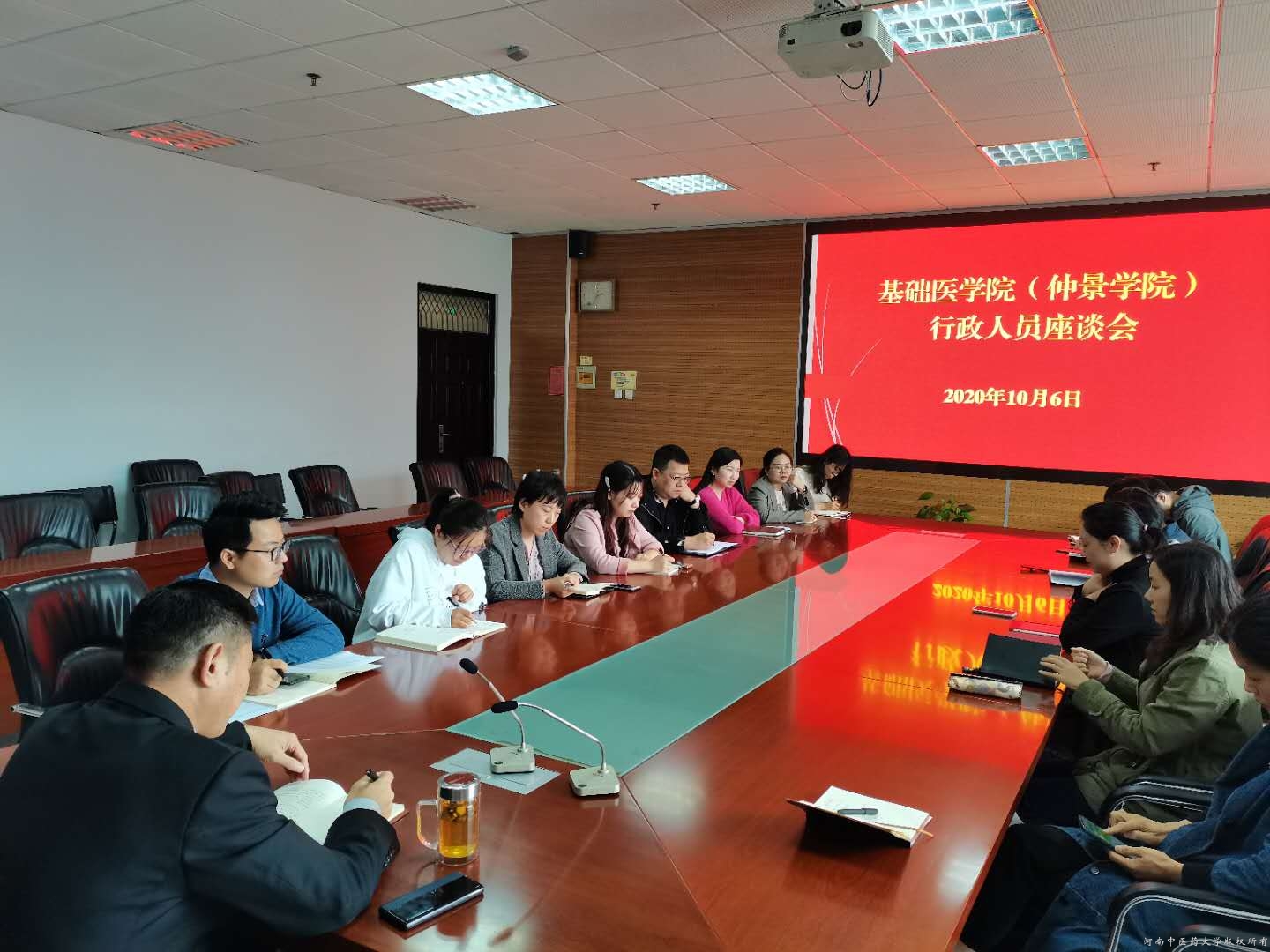 10月6日下午,基础医学院(仲景学院)在四楼会议室召开行政人员座谈会,院长李根林、全体行政人员参加会议。