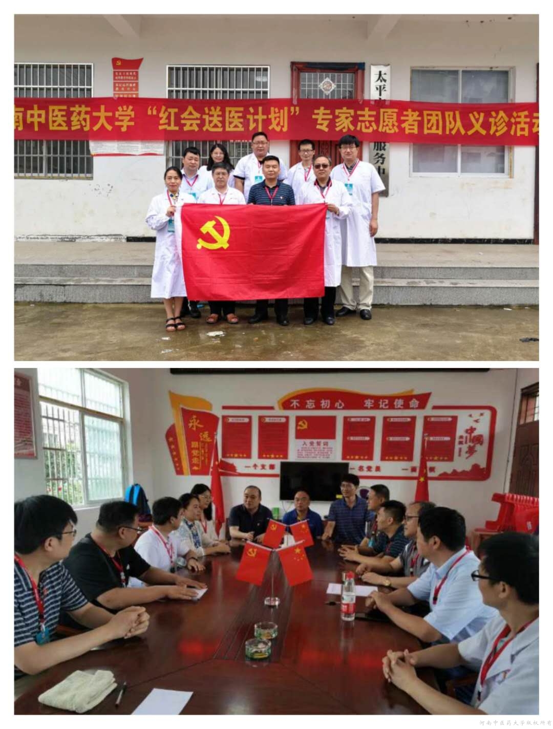 为贯彻落实党的十九大精神,关爱基层群众卫生健康,弘扬中医药文化,普及中医药健康知识,7月26日到28日,在基础医学院(仲景学院)党委副书记、工会主席徐里带领下,我院中诊方剂联合党支部,中医临床基础党支部8名教工党员积极参加河南省红会组织的“红会送医计划”活动,不远千里赴信阳市固始县武庙集镇皮冲村,开展为期三天的义诊、帮扶活动。