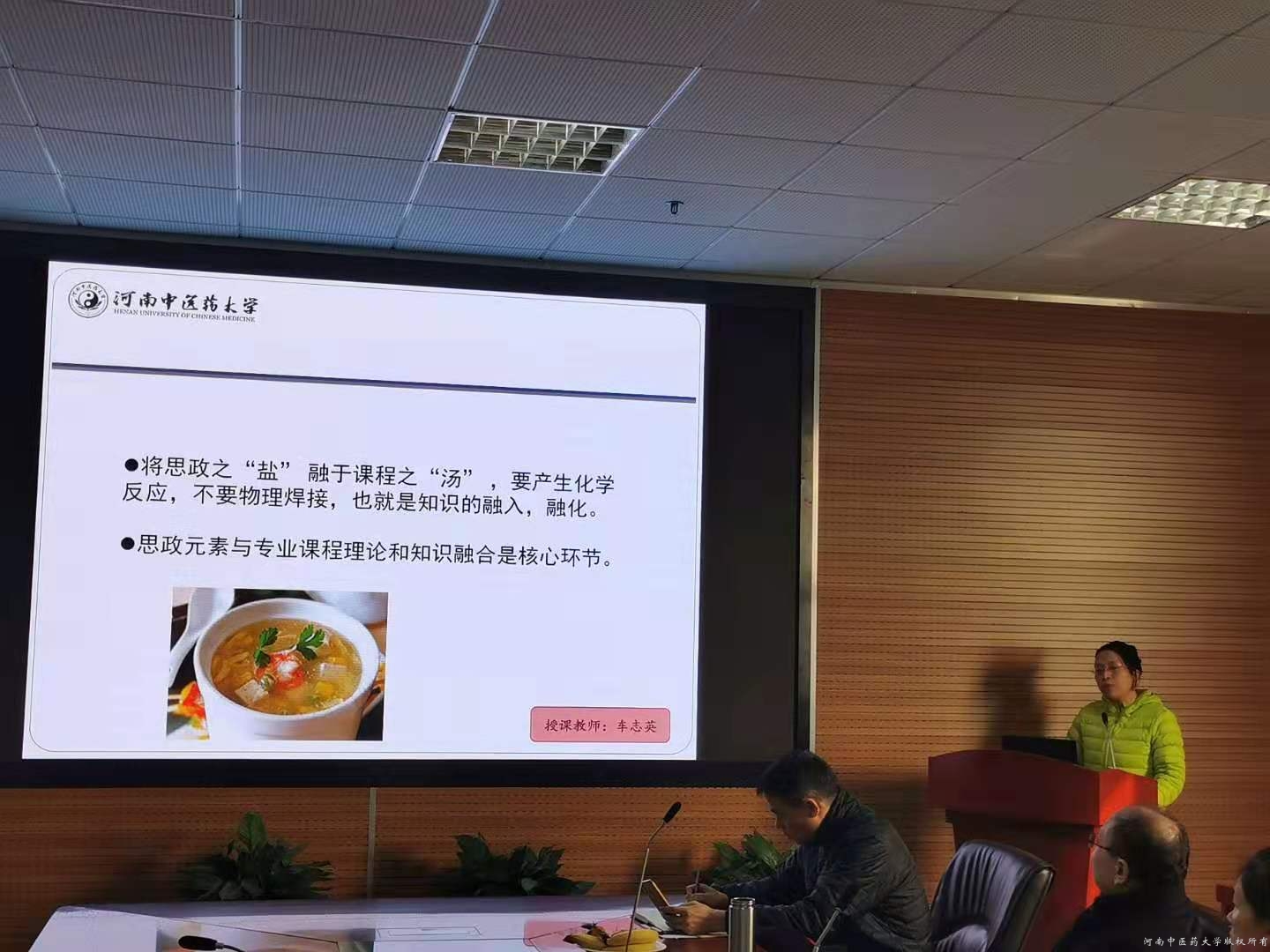 随后,我院中医诊断学教研室主任车志英教授分享了参加“全国中医药高校课程思政师资培训班”的体会以及兄弟院校课程思政改革情况,同时介绍了《中医诊断学》课程思政的建设情况。组织胚胎学课程负责人王琦副教授对《组织学与胚胎学》课程思政建设情况进行了简要汇报,还介绍了参加“新时代高校思政课程与课程思政创优行动研讨会”过程中各高校课程思政建设的方法和优秀经验。与会各课程负责人、课题主持人围绕各课程如何有效与德育元素结合进行了深入细致的讨论,并提出了切实可行的建议。
