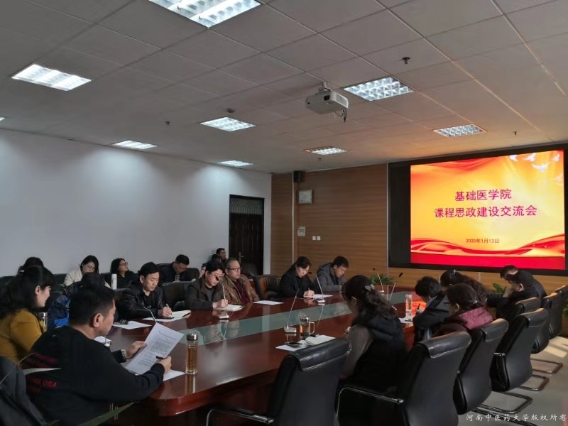 1月13日下午,基础医学院课程思政建设交流会在院部会议室举行,基础医学院李根林院长、校院两级课程思政项目负责人、各课程负责人参加了会议。会议由曹珊副院长主持。