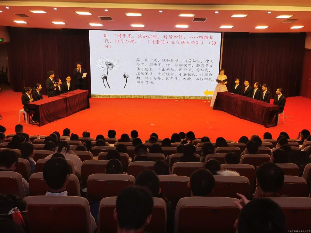 本次决赛分为个人赛和团体赛两个环节,经前期初赛选拔,共有15名选手、6个班级团体进入决赛。个人赛决赛以考察学生对中医经典条文的掌握、运用程度为主。比赛过程中15位同学沉着冷静,应对自如,充分展现对中医经典的熟识程度。团体赛决赛在古典与柔美相结合的舞蹈中拉开帷幕,各参赛队伍表现形式多样,富有新意,棋艺、太极、书法等传统文化与中医经典完美融合,多角度展现出中医经典所含的知识与内涵,赋予了经典新的活力。最终,2016级仲景班苗植堉等5名同学获得个人赛一等奖,2017级仲景班田春红等5名同学获得个人赛二等奖,2016级仲景班许玉培等5名同学获得个人赛三等奖;2017级仲景学术传承班获得团体赛一等奖,2018级仲景学术传承班、2019级中医学(5+3一体化,儿科学)班获得团体赛二等奖,2018级中医学(5+3一体化)班、2018级中医学(5+3一体化,儿科学)班、2019级中医学(5+3一体化)班获得团体赛三等奖,评委专家分别为获奖个人及团体进行颁奖。