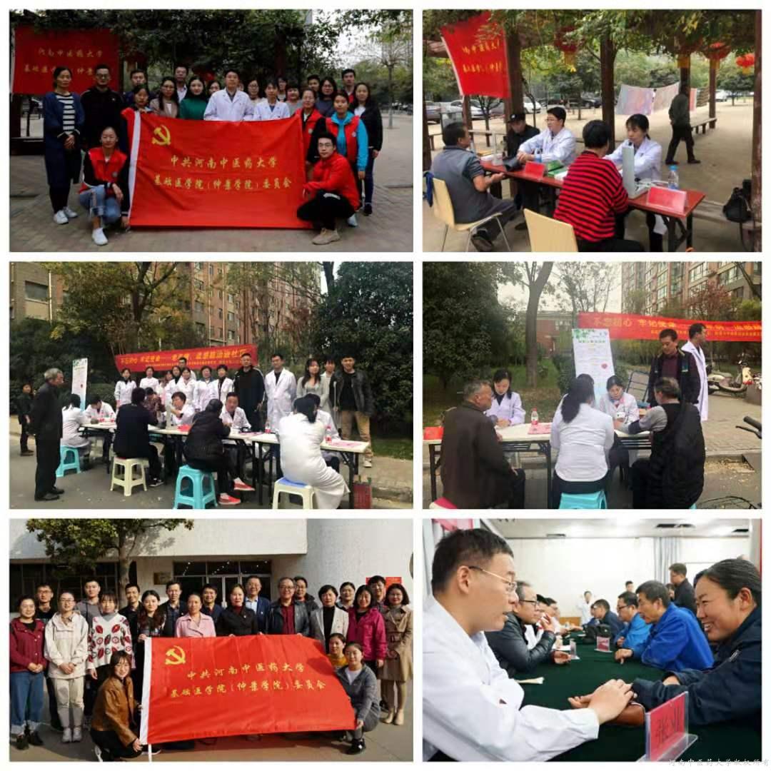 2019年11月16日,基础医学院师生党员分别在党委书记禄保平和副院长李宁的指导下,赴贾岗社区及航院社区开展以“急救、养生进社区”“医疗活动进社区”为主题的义诊活动,为广大群众送温暖,提供健康服务。