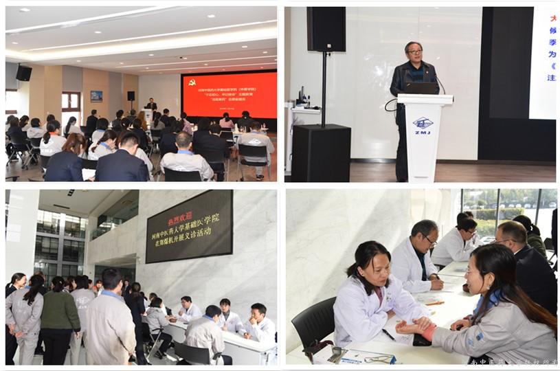 在习近平总书记视察郑州煤矿机械集团股份有限公司(以下简称“郑煤机集团”)和对中医药工作作出重要指示之际,为深入推进“不忘初心、牢记使命”主题教育,2019年11月19日,基础医学院(仲景学院)党委书记禄保平带领中医诊断与方剂学联合党支部、人体解剖与组织胚胎学党支部与研究生第一、第三党支部党员代表赴郑煤机集团开展“送医惠民”志愿服务活动。