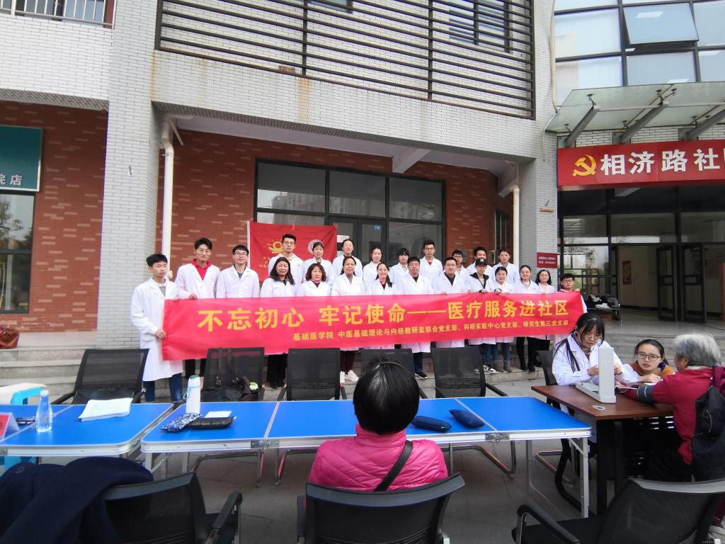 按照学院“不忘初心、牢记使命”主题教育总体部署,11月16日上午,在基础医学院李宁副院长的指导下,中医基础理论与内经教研室联合党支部、科研实验中心党支部、研究生第三党支部全体党员,赴航院社区开展“不忘初心、牢记使命——医疗服务进社区”主题志愿者活动,为广大群众送温暖,提供健康服务。