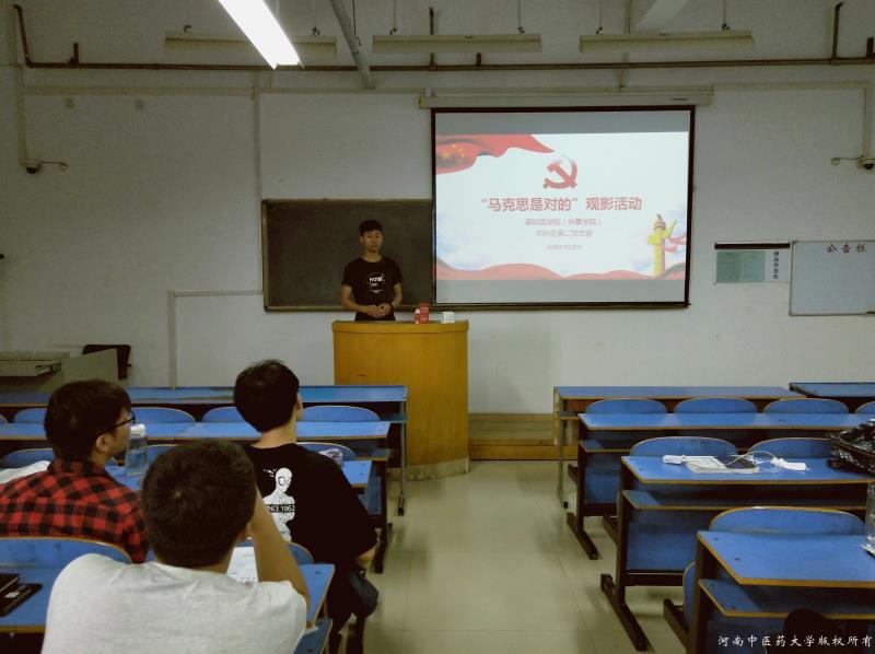 为不断加强全体学生党员的思想教育,汲取马克思主义的真理力量,探究马克思主义的当代价值和持久魅力,帮助其更好地理解马克思主义的内涵。5月20日下午,在马克思诞辰200周年之际,基础医学院(仲景学院)本科生第二党支部在A441教室举办了《马克思是对的》主题观影活动,党支部书记李倩老师和本科生第二党支部全体学生党员参加此次主题党日活动。