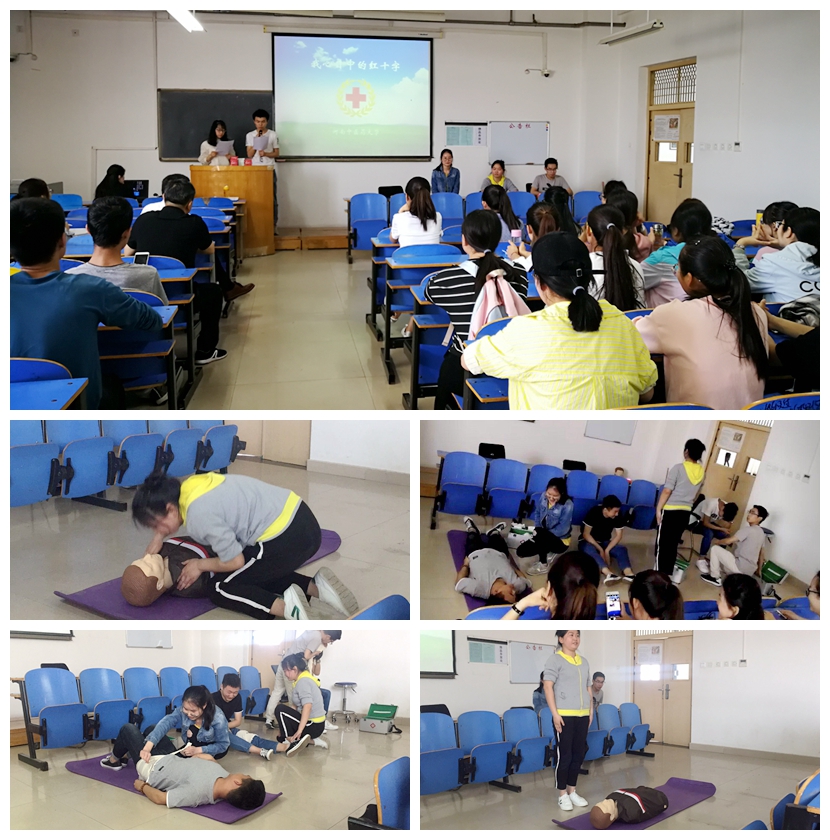 5月3日12:30到13点,在学校综合大楼A433正在举行的“红十字会知识与应急救护技能竞赛” 模拟比赛观摩。我校红十字会办公室主任郭书伟、基础医学院教授陈四清、辅导员李倩进行现场指导,基础医学院(仲景学院)60多名学生利用休息时间现场观摩。