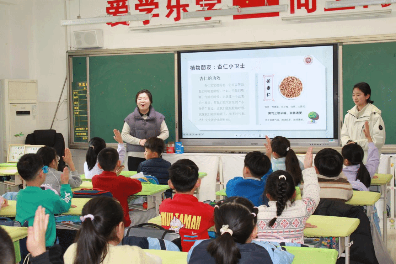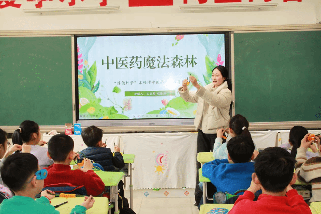 本网讯(文/图 秦中朋)中医文化进校园,传承国粹浸童心。为深入弘扬和践行雷锋精神,促进中医药文化传播,帮助更多的中小学生感知中医药、了解中医药、认识中医药、爱上中医药,2025年3月6日上午,“豫健仲景”本硕博中医药志愿服务团受邀走进郑东新区康平小学,为小学三年级的同学们带来了一场精彩纷呈的“中医药文化体验”活动。中医学院(仲景学院)、仲景书院分团委副书记秦中朋和“豫健仲景”本硕博中医药志愿服务团共8名师生志愿者参与活动。