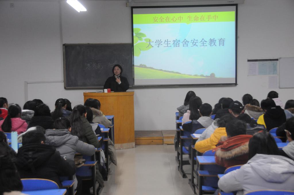 刘颖老师首先对新生重点强调宿舍安全知识,用真实的案例分析安全责任事故的原因,提醒大家未雨绸缪,防微杜渐,真正做到防盗、防火、防骗,特别是对学校宿舍管理规定中新生易违犯的内容重点进行了讲解。针对当前普遍存在的大学生安全意识薄弱、轻信他人、自我保护观念差的现象,刘老师强调要加强大学生安全意识教育,提高大学生自我防范意识和能力。第一、尽量不与陌生人谈话,杜绝外来伤害源;第二、结伴出行,减少受害概率;第三、受到威胁恐吓时,要沉着冷静,利用周边人或物创造逃脱、警示机会,避免伤害,刘老师指出,作为新生,大家还不完全熟悉学校情况,对社会情况更是知之甚少,目前面临期末考试,希望大家尽量减少外出,在校园内认真开展复习备考工作,多和任课老师、辅导员、班主任交流、咨询,遇到突发事件应第一时间上报。