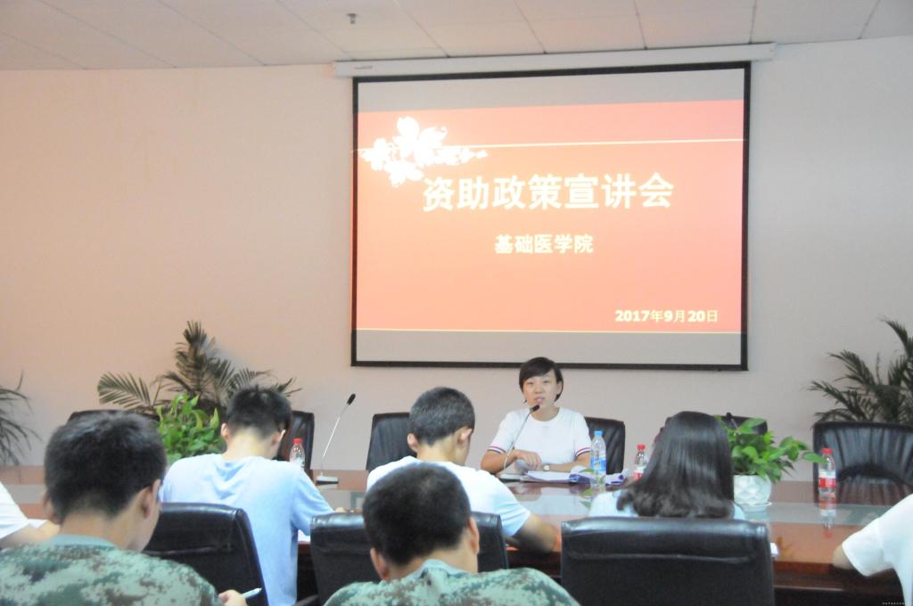 为落实学校2017年学生资助工作会议精神,切实做好我院本年度资助工作, 9月20日下午,基础医学院于四楼会议室召开资助政策的宣讲会。我院资助专员李倩老师、学贷助理岳淑琴、张进利、各班资助负责人和学生代表参加会议。