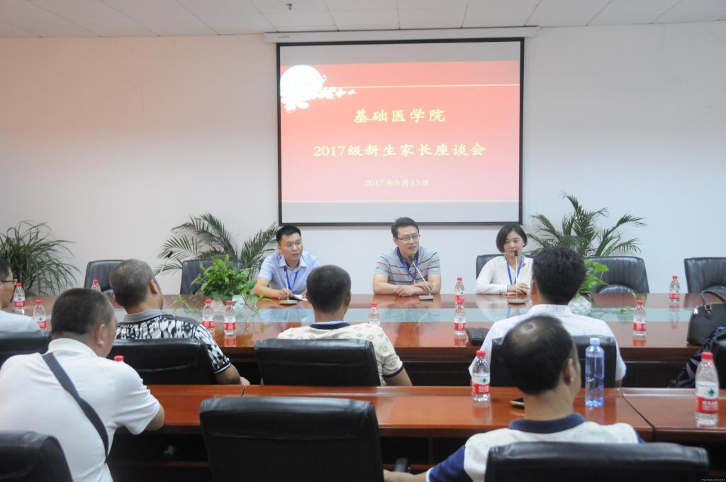 为了能让新生尽快适应学校生活,让学生家长对学校有进一步的了解,能让家长与学校更好的沟通。 9月13日新生报到之际,基础医学院在教学楼四楼会议室召开2017级预防医学专业新生家长座谈会。基础医学院党委副书记朱平生教授、辅导员、学科教师以及30多名新生家长和新生参会。交流会由基础医学院学工办主任徐里老师主持。