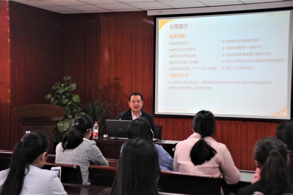 招聘会上,张经理首先简要介绍了其公司的业务范围、团队建设以及临床试验项目等内容,使同学们对其公司有了大致了解,并欢迎有就业意向的同学随时实地参观。随后,张经理与同学们就当下的就业现状、公司待遇、考研问题等方面进行了深入交流,与同学们分享行业经验。