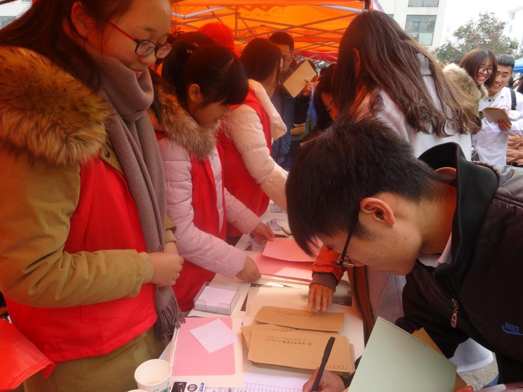 为践行感恩教育,增强大学生们的感恩意识,将感恩付诸行动, 11月24日,基础医学院学生会组织青年志愿者举办了感恩教育系列活动之“将感恩书于信笺”信件免费寄送志愿服务活动。