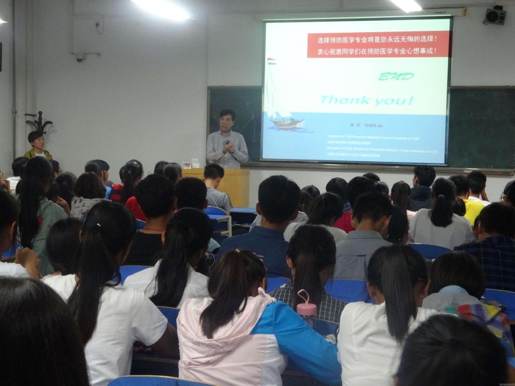 为帮助2016级新生更好的认识和了解预防医学专业,引导他们在专业道路上树立远大理想,迈出坚实的一步。基础医学院于2016年9月27日晚7点在教学楼A413举办了预防医学专业知识讲座。此次讲座主讲人为中医预防学科带头人申杰教授,新生辅导员李倩老师及2016级全体新生共同聆听了此次讲座。