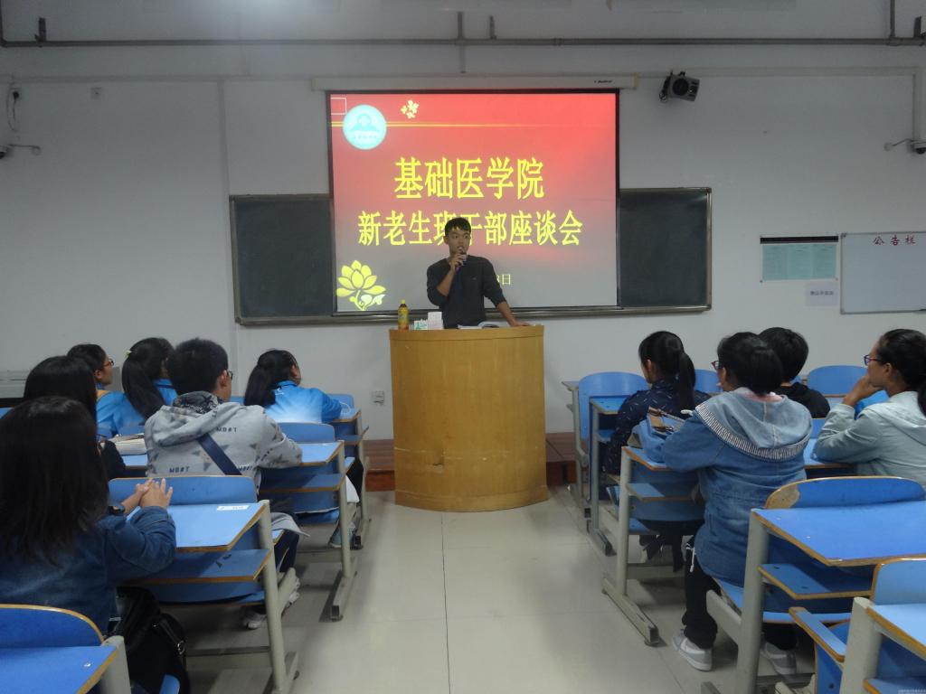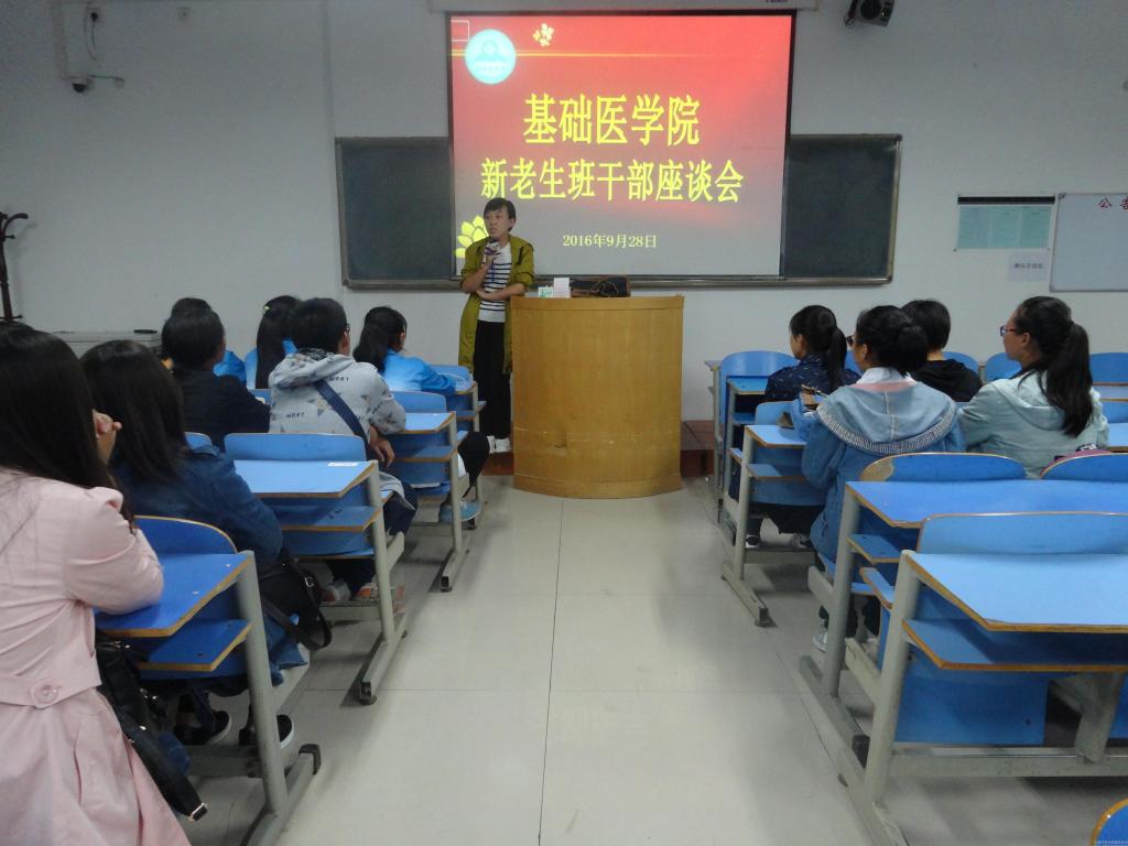 为了使2016级新生尽快适应大学生活,充分发挥班干部岗位职能,9月29日晚,基础医学院召开2015级与2016级班干部座谈会。座谈会由新生辅导员李倩老师主持,15预防班和16预防班的全体班干部参加了此次活动。
