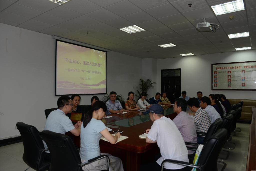 基础医学院围绕“不忘初心,重温入党誓词”主题召开中心组学习交流扩大会