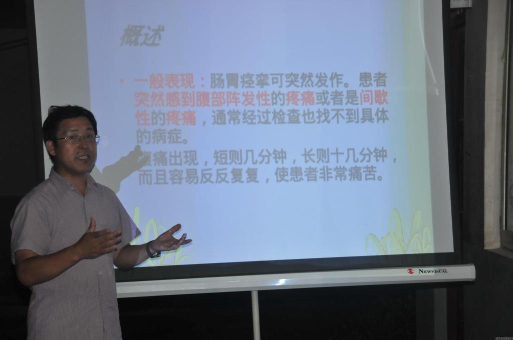 讲座以临床中常见的胃肠痉挛治疗为主要内容。结合近几日义诊中所出现的腹痛病人症状,谢教授从发病机制、临床表现、鉴别诊断、防治方法等方面对胃肠痉挛疾病做了全方位的讲解。专业讲座后,谢教授希望同学们在医疗技术快速进步的今天,要努力学习、积极实践,不断提高从事医疗卫生服务工作的能力。同时希望队员们能够把握好本次“三下乡”社会实践的机会,将理论运用到实践当中,做到知行合一。