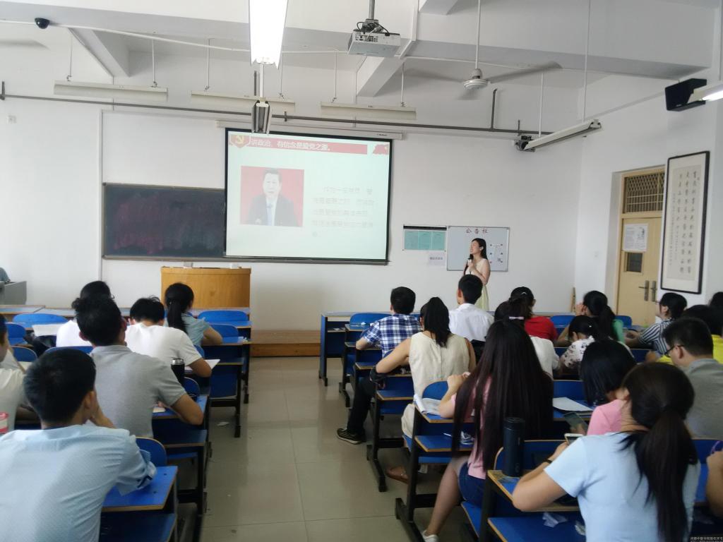 专题党课上,支部书记刘旭初同志就什么是“四讲四有”,为什么要在学生党员中开展“四讲四有”学习教育,新形式下学生党员如何践行“四讲四有”等三个方面向全体党员做了全面、深入、生动、透彻的讲解,同时她还结合实际工作及大学生日常,为大家讲述了如何规范党员日常生活言行,全体党员将“四讲四有”合格党员标准与自身做了对比,并对以上实例展开了热烈的讨论。