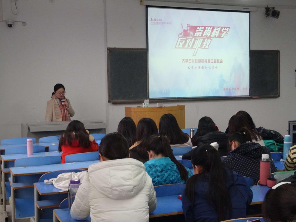 为了普及宗教知识和国家有关法律法规,落实学校《关于在我校大学生中开展宗教知识竞赛活动的通知》要求,基础医学院在校班级于11月18日至11月21日相继开展大学生宗教知识主题班会。