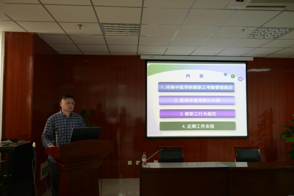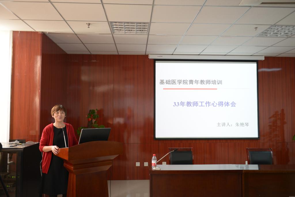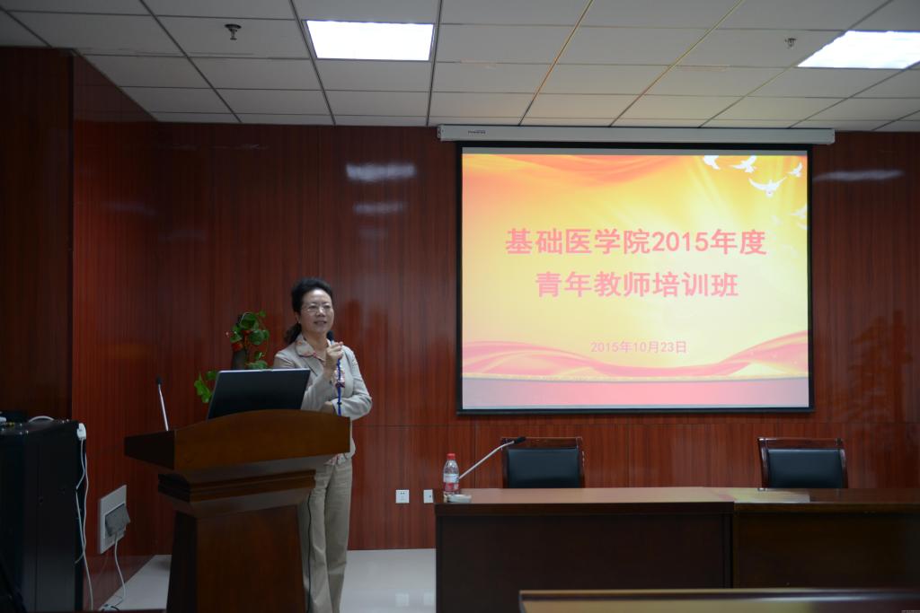 随后的培训中,基础医学院马相奇书记做了“更新观念,和谐发展”的讲座,从师德师风建设方面对青年教师提出期望,希望青年教师做到:爱岗敬业,精神高尚;教书育人,水平高超;为人师表,品行高洁。曹珊副院长和高剑峰副院长分别就教学管理与运行、教学和科研奖励资助政策以及科研工作如何开展等内容,向青年教师进行讲解培训。科技处刘琦老师结合自己的工作经验向青年教师介绍了我校科研项目申报的类别、申报流程和申报管理流程,方便青年教师们更好的开展科研工作。全国优秀教师、河南省先进工作者、教学名师朱艳琴教授围绕“调心态、能干事、会干事、会减压”四个方面,与青年教师们分享了自己从教33年的工作心得体会,希望青年教师们能够做到快乐工作,感知幸福的生活,使参会者感悟颇深。李肇进副院长向青年教师讲解了学校教职工考勤管理办法、年终考核等管理规章制度,促使青年教师能够更快的适应学校工作。培训结束前,詹向红院长做专题发言,她介绍了基础医学院的发展历史和机构设置情况,并向参加培训的青年教师提出成为一名合格的大学教师应具备的素质:专业知识要深、博学知识要宽、语言表达能力要好、思维能力要强、人格水平要高、教育理念要新。具备这六方面素质就需要做到:不断学习,才能实现理想创造辉煌;博学笃行,为人生长跑注入活力。