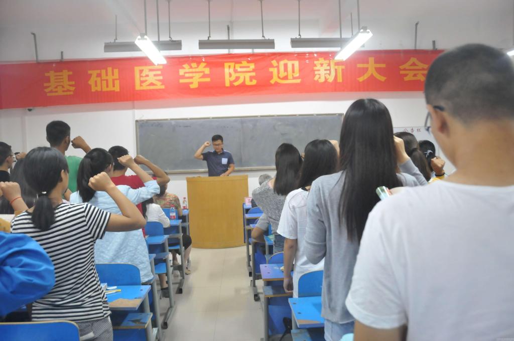 9月28日上午8点半,基础医学院迎新大会在教学楼A313教室召开。基础医学院党政领导、学科教研室主任、党政办、教研办、学工办、研工办工作人员及2015级全体新生及部分老生代表参加本次大会,会议由党委副书记朱平生主持。