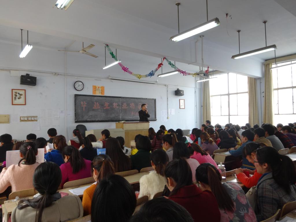 3月13日下午,基础医学院在老校区3号楼203教室召开2015届毕业生就业指导会。学工办主任徐里老师、毕业班辅导员刘紫阳老师及中西医临床医学、预防医学、仲景班全体毕业生二百余人参加会议。