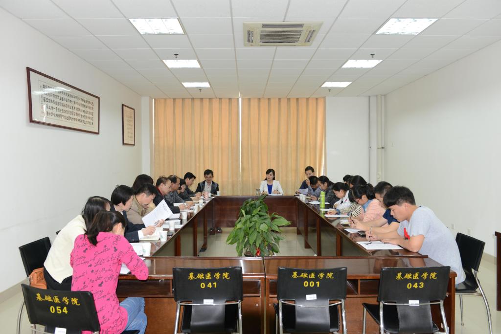 为统一我院教职工的教育教学思想,更新教育教学思想观念,进一步树立以“学生为中心”的教育理念,全面提高人才培养质量,为中医学专业认证工作营造浓厚氛围,基础医学院于2014年4月30日下午在新校区A440举办了关于深入开展转变教育理念大讨论活动的师生座谈会。基础医学院各学科主任、教师代表、教研办人员、部分学生代表参加了座谈会,会议由基础医学院曹珊副院长主持。