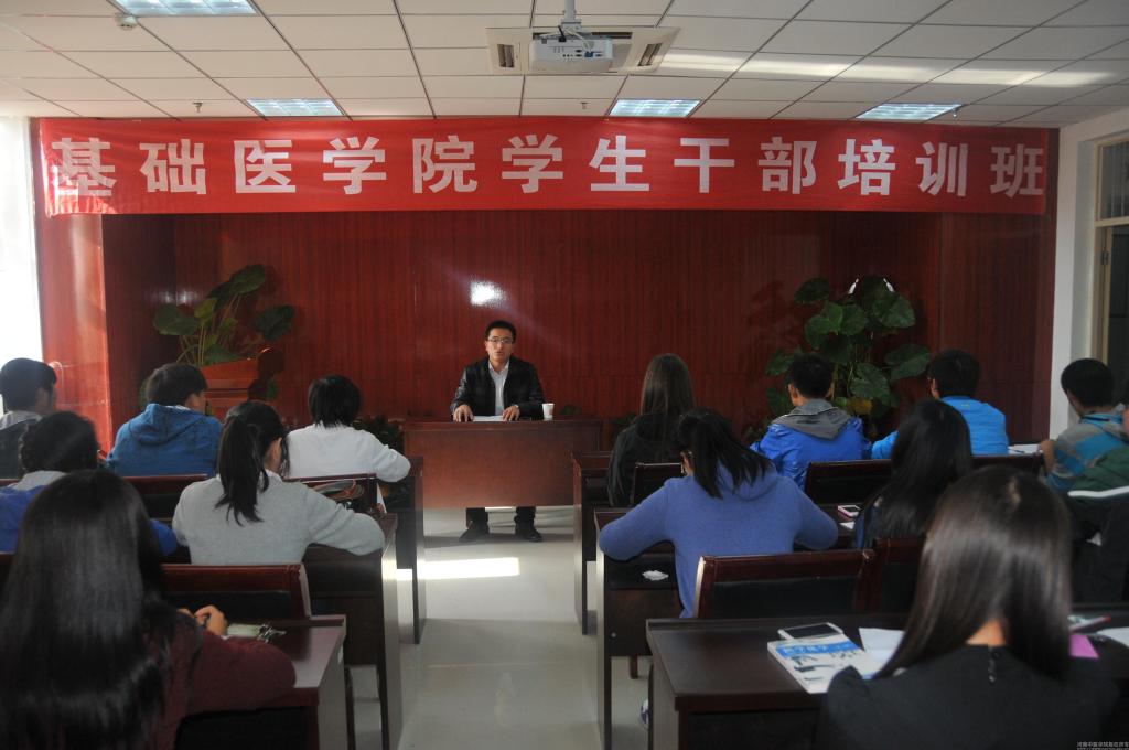 为加强对学生干部的教育和培养,提高学生干部的理论水平和工作能力,进一步深化学习型学生干部队伍建设,基础医学院于11月4日至11月18日举办了以“建设学习型学生干部队伍”为主题的第十期学生干部培训班。本次培训班以分层培训为原则,根据不同学生干部的岗位职责和工作特点进行有针对性的培训。此次培训共有学生会新进干事培训、宿舍长培训、主题讲座培训、班长论坛及素质拓展五个主要内容。