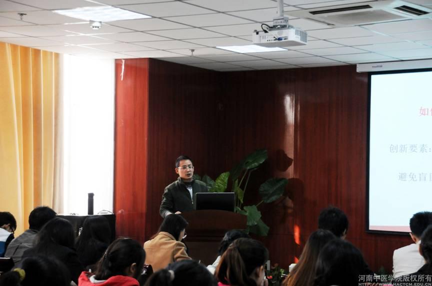 2013年11月5日上午,河南中医学院分子生物实验室主任陈玉龙博士做客基础医学院“博士讲坛”,并以“科研课题申报、标书撰写与设计”为主题做专题讲座,基础医学院科研实验中心工作人员、相关学科科研骨干及基础医学院2013届硕士研究生和本科生等近70人参会聆听。讲座由基础医学院副院长高剑峰主持。