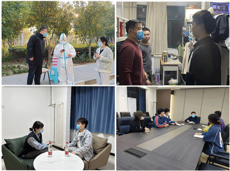 为保障学生核酸检测有序,他们每天奔波于学生宿舍、核酸检测点之间,确保不漏一人。为保障东明校区学生心有所归,大家主动请缨,只身前往,扎根一线,暖心安人。为保障信息精准,他们充分组织学生党员、干部,构建学生社区+楼层+宿舍的网格管理模式,建全学生状况数据库、专项工作微信群,确保底数清、情况明、落实快、数据准。为保障学生心理健康,他们及时与学生谈心谈话,了解同学们的心理状况、缓解疫情压力下的焦虑情绪,引导学生积极乐观的心态。为保障学生学习质量,他们用心陪伴,检查学生宿舍的卫生、了解在线学习的情况,及时向授课老师反馈信息,努力营造健康向上的学习氛围。为保障资助工作顺利进行,他们深夜挑灯加班,审核材料,悉心解答学生困惑。为保障学生及时便捷就医,他们有人发挥所长,办公室坐诊,为有病痛的同学们开出良方。