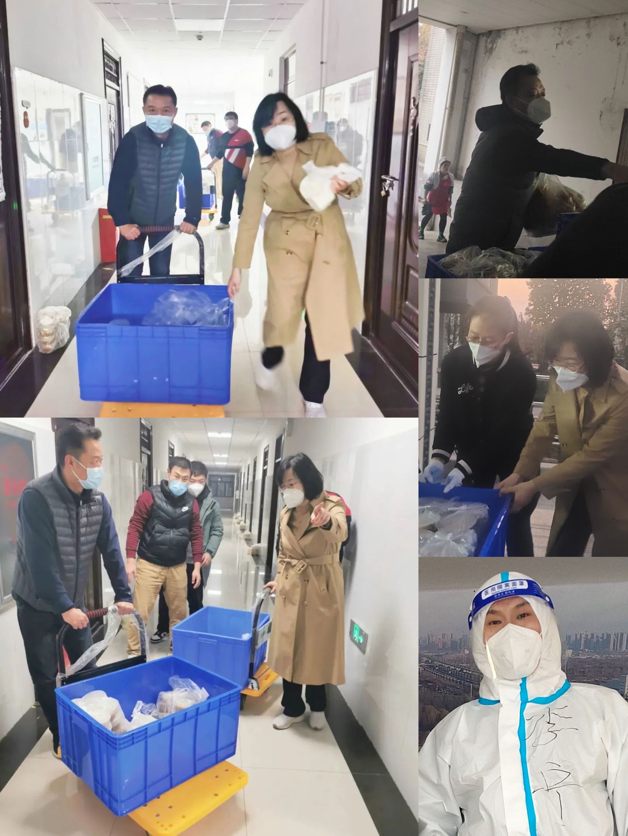 团结一心,排除万难。领导干部们冲锋在前,领着大伙儿撸起袖子一起干,他们有的当起电动三轮车司机,有的成为搬运工,有的干起垃圾运送员……看起来娇小柔弱的女同志,搬运餐箱却从不含糊;由于工作强度大,有的老师血压飙升,却不愿多休息一刻;还有老师腿部骨折,钢板尚未拆除却依然坚持为学生配送三餐。在隔离酒店,领导老师们为了保证在学生住的舒适,将自己的房间腾让出并住进了酒店仓库。大家从未抱怨、决不退缩,同时间赛跑,与病毒争先,以实际行动和责任担当,发扬不畏艰险、无私奉献的精神。