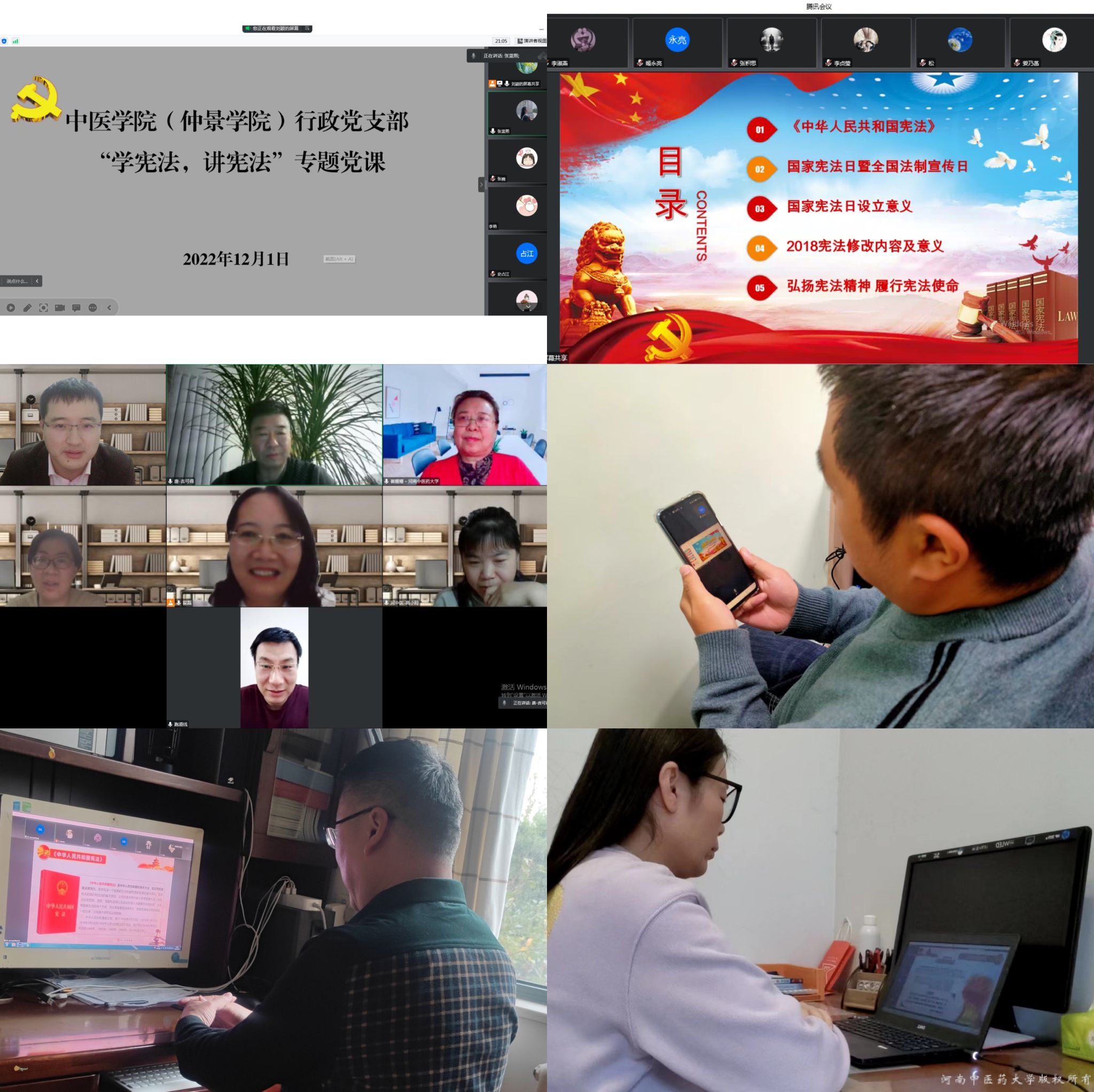 本网讯(文图/张蓝熙)为认真学习宣传贯彻党的二十大精神,深入学习贯彻习近平法治思想,进一步在我院师生群体中普及宪法知识、弘扬宪法精神、树立宪法权威,11月25日-12月4日,中医学院(仲景学院)全体党支部积极开展线上“学宪法、讲宪法”专题党课。