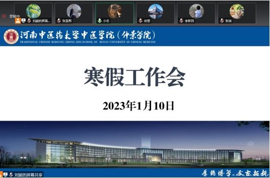 本网讯(文图/张蓝熙)2023年1月10日19时,中医学院(仲景学院)于线上召开寒假工作会,学院全体班子成员、党支部书记和科室主任参加会议。会议由学院党委副书记徐里主持。