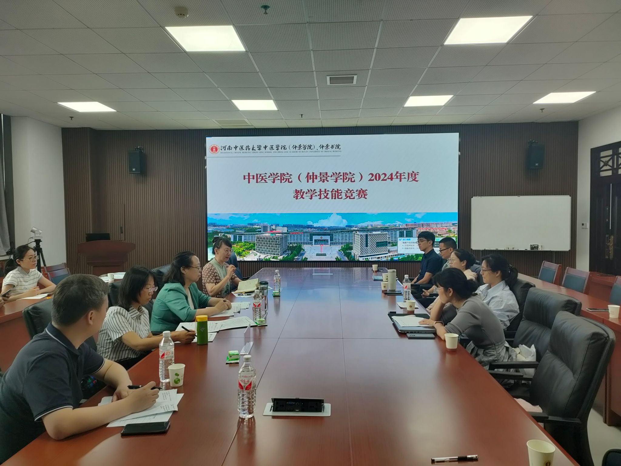 本网讯(文/张培旭 图/史占江)为深入学习贯彻习近平新时代中国特色社会主义思想和党的二十大精神,大力弘扬劳模精神、劳动精神、工匠精神,进一步提升我院青年教师的思想政治素质、教学能力和业务水平,中医学院(仲景学院)于6月21日在教学实验楼A332会议室举办2024年度教学技能竞赛。学院工会主席、副院长刘文礼,各教研室教师代表到场观摩。