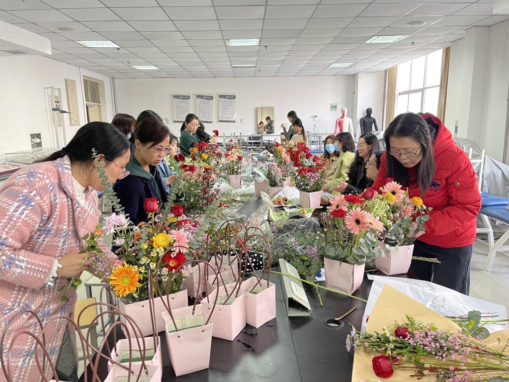 女教职工现场创意插花
