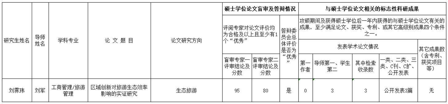 2022年校级优秀学位论文名单公示 作者:旅游学院发布时间:2022-05-18 根据湖北大学研究生院《关于组织开展2022年度校级研究生优秀学位论文评选工作的通知》及相关文件精神,经个人申请、学院审议,拟推荐旅游管理硕士研究生刘霁玮同学硕士学位论文为2022年湖北大学优秀硕士学位论文。 公示期为2022年5月18日-5月20日共3个工作日。如有异议,请于公示期内以书面形式反馈到学院116办公室。 旅游学院 2022年5月18日 (审核人:余意峰)