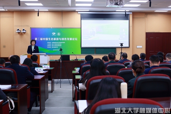 王红玲在致辞中说,生态旅游作为环境友好型产业,已经成为绿水青山向金山银山转化的主渠道,在促进碳达峰碳中和工作中具有积极作用。作为省属高校的领头羊和排头兵的湖北大学,文化底蕴深厚,人文社会科学研究具有显著的优势和特色,为湖北“建成支点、走在前列、谱写新篇”发挥重要作用。以马勇教授为代表的湖北大学旅游研究团队深耕旅游领域,在生态旅游和绿色发展研究方面也走在前列。希望通过本论坛可以搭建起各高校及科研机构的合作平台,进一步推进中国生态旅游与绿色发展的研究,为湖北绿色崛起贡献智慧和力量。