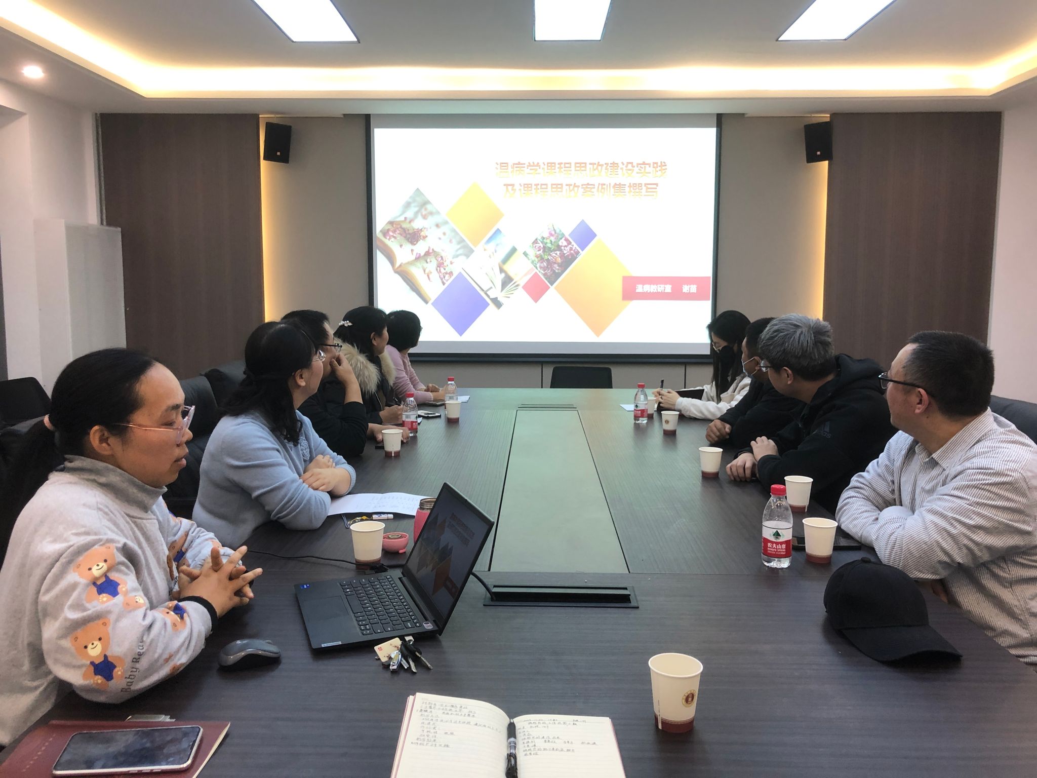 霍磊副教授结合近年来《内经选读》课程思政建设思路及举措,从如何申报高质量课程思政建设项目入手,分享了工作经验和研究心得。她认为课程思政项目申报要以立德树人为宗旨,立足高标准,早谋划、重基础、多参与、抓机遇、不畏难,要不断实践探索,积累经验,为项目申报奠定坚实基础。谢苗博士结合开展《温病学》课程思政样板课程建设和案例集撰写的体会,从课程思政元素挖掘、课程思政融入途径、课程思政教学方法及考核方式、效果评价与教学反思等多方面分享了课程思政建设的经验和收获,她认为课程思政要结合学情,联系时政,与时俱进,及时更新课程思政元素,并且通过调查问卷等形式分析课程思政教学效果,不断完善课程思政教学设计,改进教学方法,提升教学成效。两位教师对课程思政建设理念的深度剖析以及生动的经验分享,引起了在场教师的高度共鸣,并围绕课程思政矩阵图、案例集撰写思路、教学成果转化等问题展开了热烈的讨论。