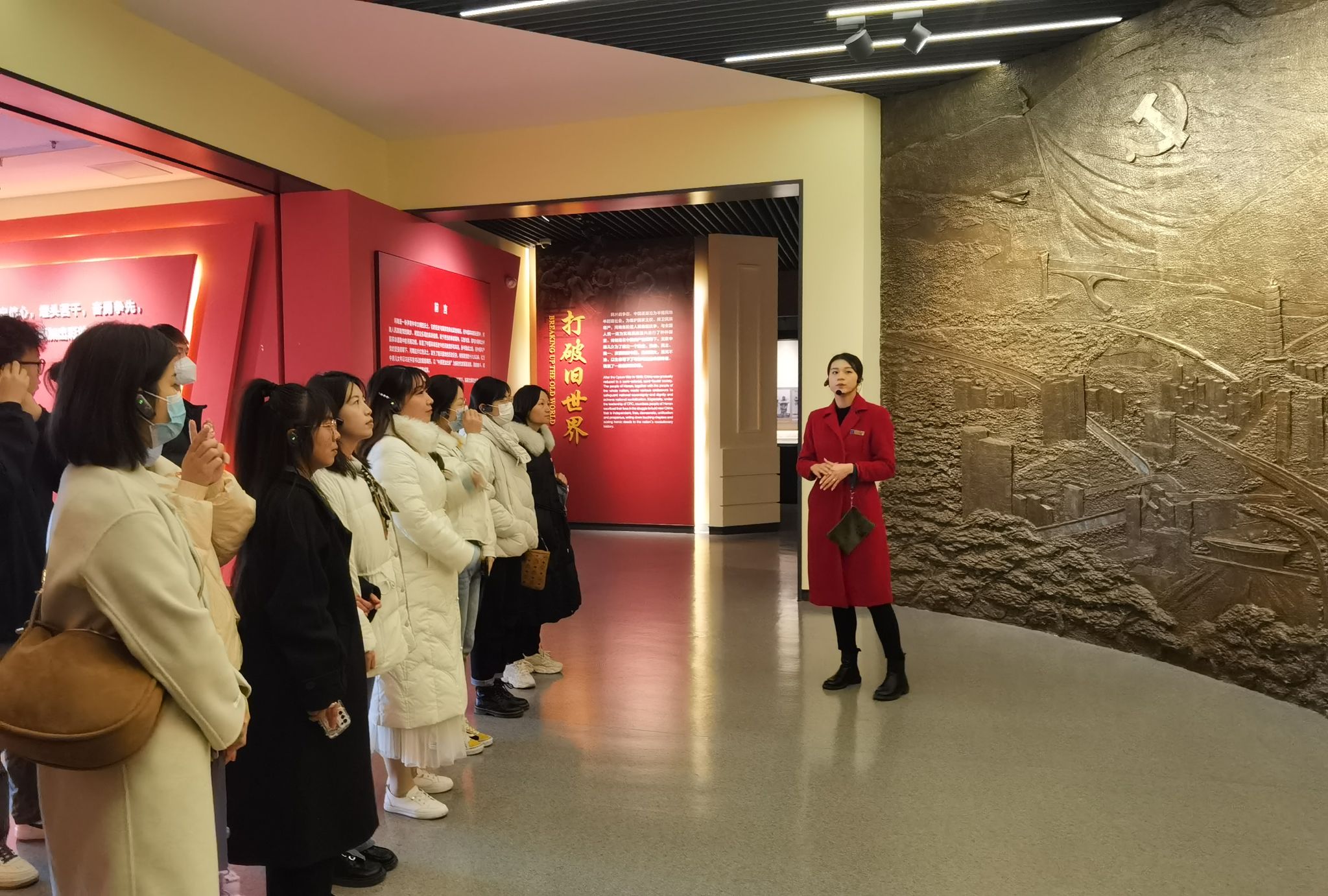 在讲解员的带领下,师生首先进入“出彩中原——河南红色文化陈列”展馆,从“打破旧世界”到“建设新家园”,再到“走进新时代”,丰富详实的历史资料、饱经风霜的实物展品为大家展现了近现代以来河南波澜壮阔的历史画卷,让同学们深刻感悟到了河南人民坚定乐观的革命信仰和敢于担当的奉献精神。随后,大家又参观学习了以“泱泱华夏,择中建都”为主题的中原历史文化展馆,细细品味新石器时代、夏商、西周、东周、秦汉魏晋南北朝、隋唐、宋金元等各个历史时期的中原文化特色,深深感受到了中华文明的源远流长和中原文化的博大精深,进一步加深了对“一部河南史,半部中国史”的深刻理解。参观结束之后,全体师生党员面向党旗重温入党誓词,激励自己不忘初心、牢记使命,永续红色血脉,传承中原文化。