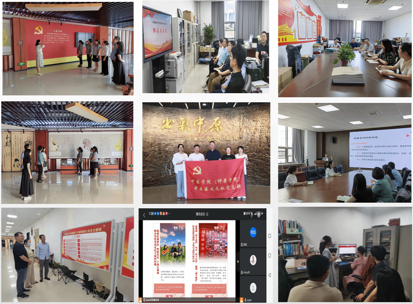 7月1日至7月10日,各党支部结合工作,深化党纪学习教育,开展了形式多样的“学党纪 守廉洁”主题党日活动:赴学校“治未病”廉洁教育园地参观学习,开展廉政警示教育;赴河南博物院参观,亲身感受党的光辉历史,领略革命先烈的崇高精神;观看学校党建平台优秀微党课视频《诗词里的长征路》《弘扬伟大建党精神,走好新时代赶考路》,进一步认识到坚定不移推进全面从严治党、加强党的纪律建设的重要性。活动中,学院党委副书记朱庆军,以“从中国戏曲中的红色基因谈‘第二个结合’”为题为支部党员分享马克思主义与中国传统文化的结合。