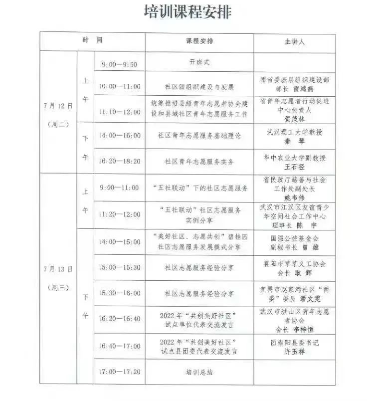 (图为培训课程表)