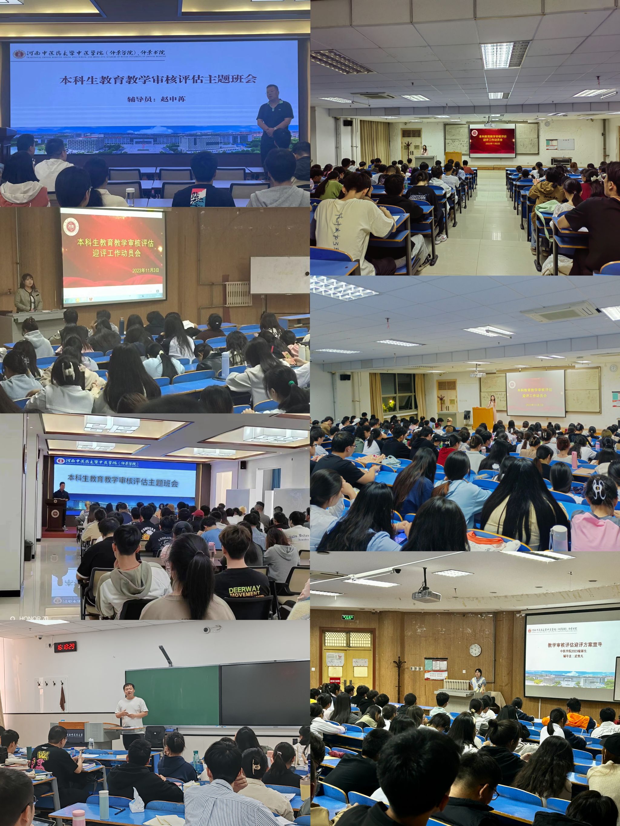 本网讯(文图/刘淘淘)为迎接我校本科教育教学审核评估,营造良好的迎评氛围,引导书院学生高度重视并积极参与本科教育教学审核评估工作,展现优良学风与精神风貌,11月6日至11月10日期间,仲景书院各班级积极组织召开“迎教育教学评估,创优良学习风貌”主题班会。