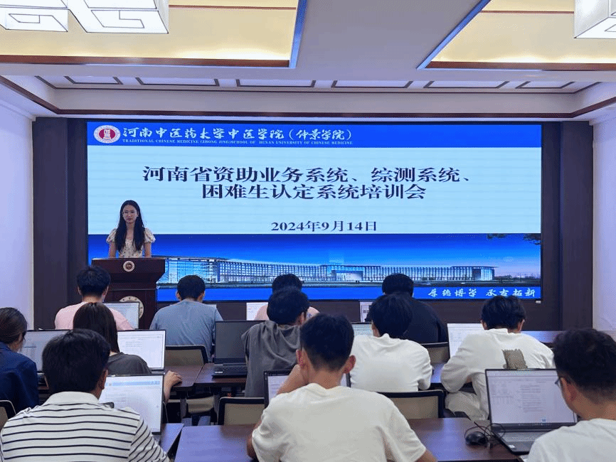 本网讯(文图/史玉洁)为深入贯彻落实国家资助政策,加强对学生资助政策的宣传、教育,确保家庭经济困难学生得到有效资助,9月14日中午,中医学院(仲景学院)、仲景书院开展2024年家庭经济困难学生认定系统及综合素质测评系统培训会,学院资助专员、辅导员以及负责班级困难生认定的50余位学生代表参会。
