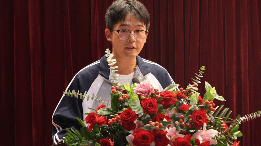 在校生代表王惠瑶同学分享了自己的心得体会,从寻找自我、接纳自我、成就自我这三方面讲述了自己的大学成长之路。新生代表常皓阳同学发言,他建议同学们在接下来的大学生活中不怕苦、能吃苦,不畏难、战艰难,不退缩、敢奋斗,用智慧和青春书写新的人生篇章。