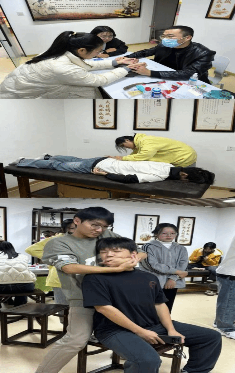 本次义诊活动的一大亮点是“导学互动”模式的引入。现场设置了正骨调理区、推拿拨筋区和导引教学区,同学们积极参与,学习了简单实用的保健操,在实践中感受中医文化的独特魅力。这种创新的义诊模式,不但极大地调动了同学们的参与热情,而且也提升了同学们的临床实践能力。活动还设置了特色疗法针刺、艾灸、耳穴压豆等项目,吸引了众多师生驻足观看、亲身体验,大家真切感受到了中医疗法的神奇。中医体质辨识区更是人气爆棚,在中医体质辨识的过程中,社团义诊志愿者们不仅科普了中医养生保健以及常见疾病防治等知识,而且也增进了现场师生对中医药文化的认识和理解。