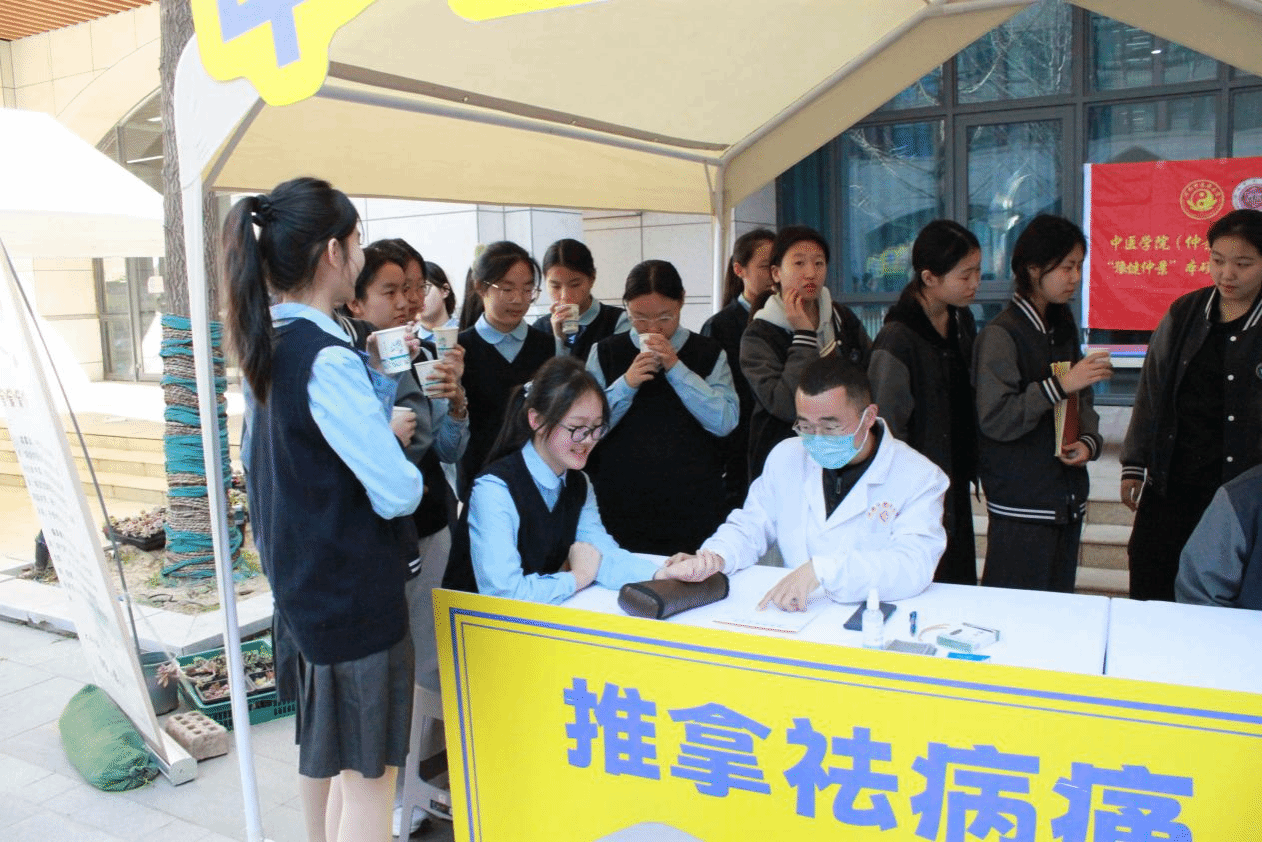 活动设置非遗手工、健康义诊、耳穴贴敷、中医推拿、中药辨识、方剂鉴赏、“五音”科普、杏林文创等展示,各年级中小学生和周边社区居民轮流参观体验,现场人潮涌动,热闹非凡。