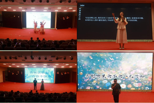 晚会分为三个章节,分别为“青葱印记·声起”“灼灼其华·声燃”与“长歌未央·声远”,用“回忆”“激情”“传承与启程”等主题,传达对毕业生的美好祝愿。歌曲《入海》、民舞《浮光》以温柔的旋律与曼妙的舞姿,在光影交错间定格了青春最美的剪影。《我们的时光》《鲜花》《远走高飞》用洒脱激昂的歌声,诠释青年勇往直前、追逐梦想的无畏精神;原创歌曲《佩兰》、吉他弹唱《南方姑娘》,用质朴温暖的旋律勾勒出清新隽永的画面,为热烈的舞台增添了一抹诗意;戏曲节目《戏韵流声》凭借韵味十足的唱腔和经典的身段,彰显了国粹艺术的恒久芬芳;器乐合奏《打上花火》以跳跃的音符和青春的律动,编织出璀璨夺目的音乐火花。晚会在《小幸运》、《记得》与《爱的回归线》三首温暖人心歌曲的联唱中走向尾声。